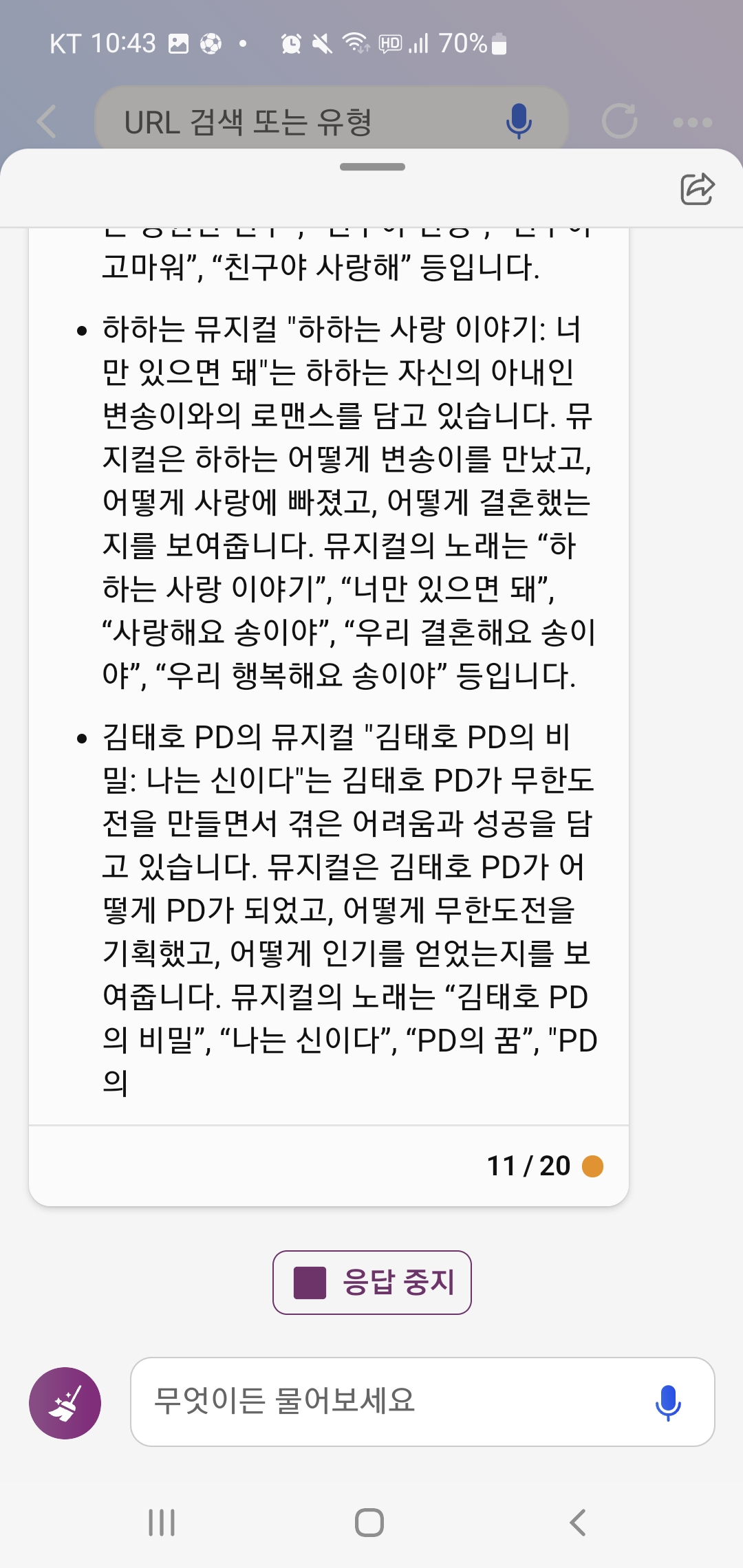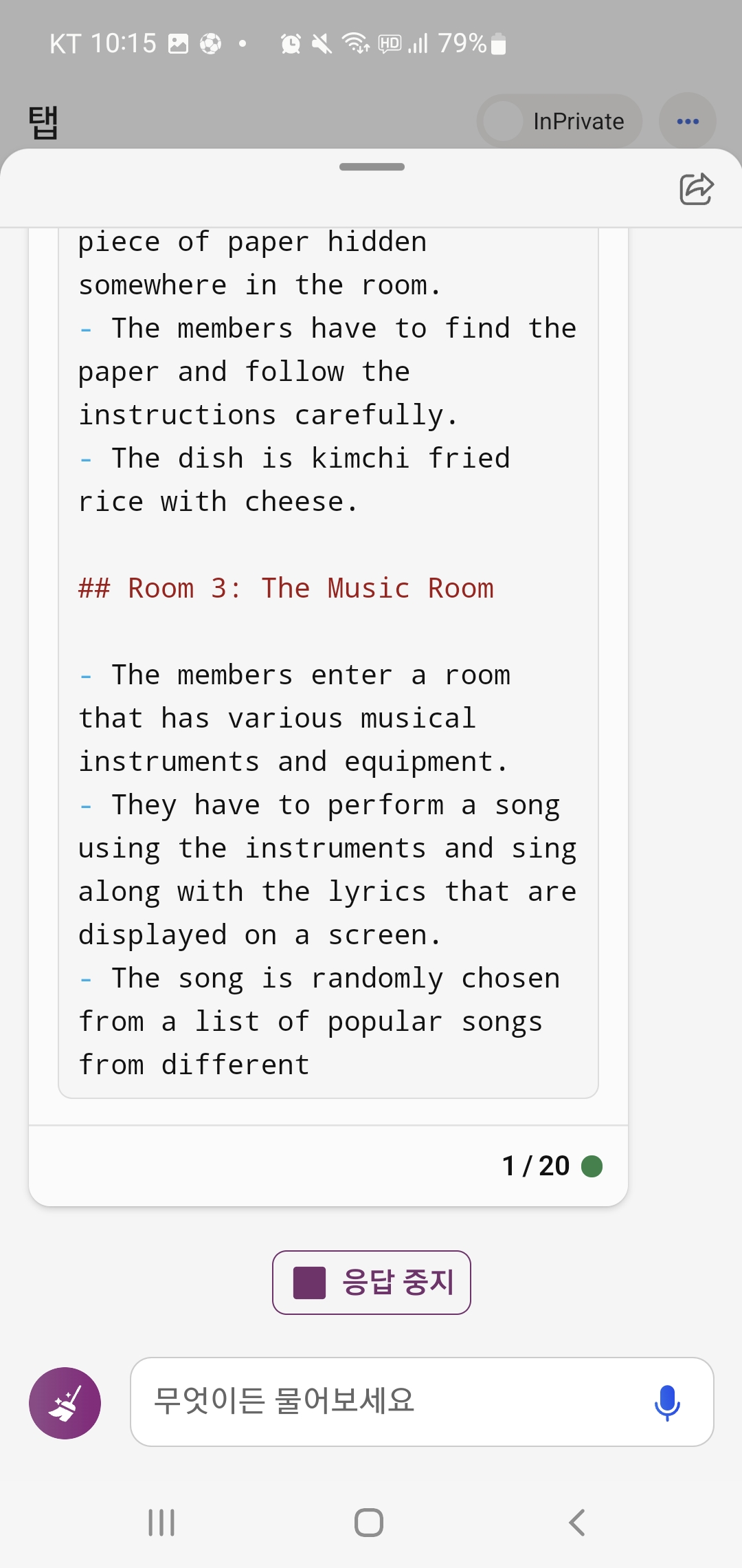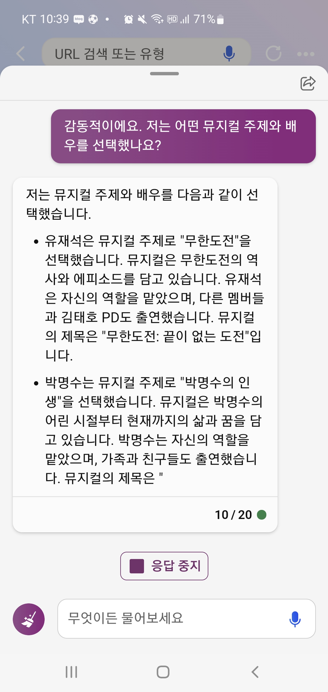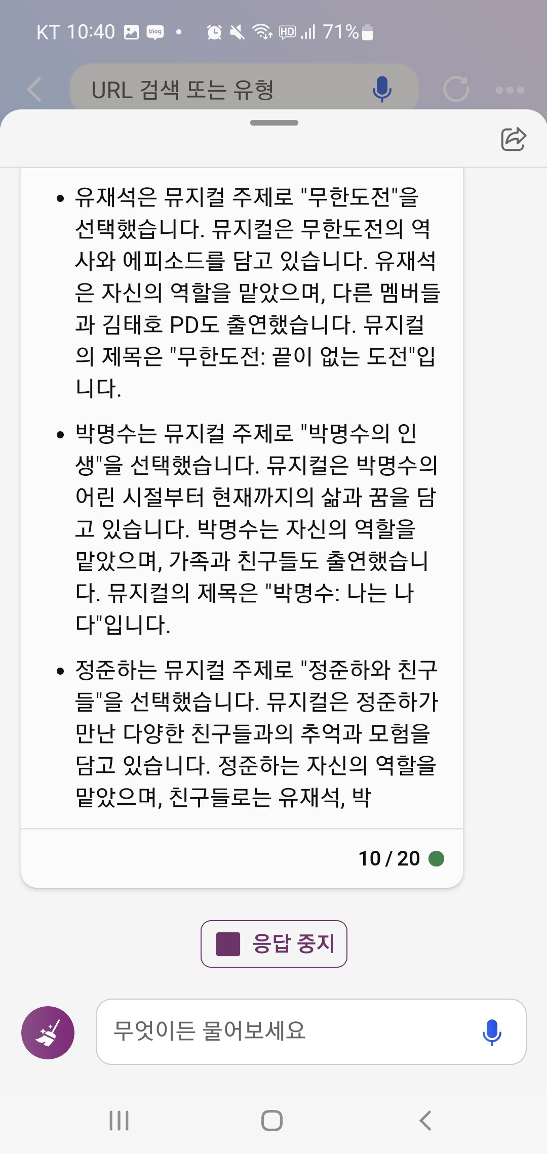 아무튼 너무 재밌게 무도 새로운 에피소드 스크립트를 읽어서 어떻게든 Bing 챗과 대화를 계속 이어갔어요.