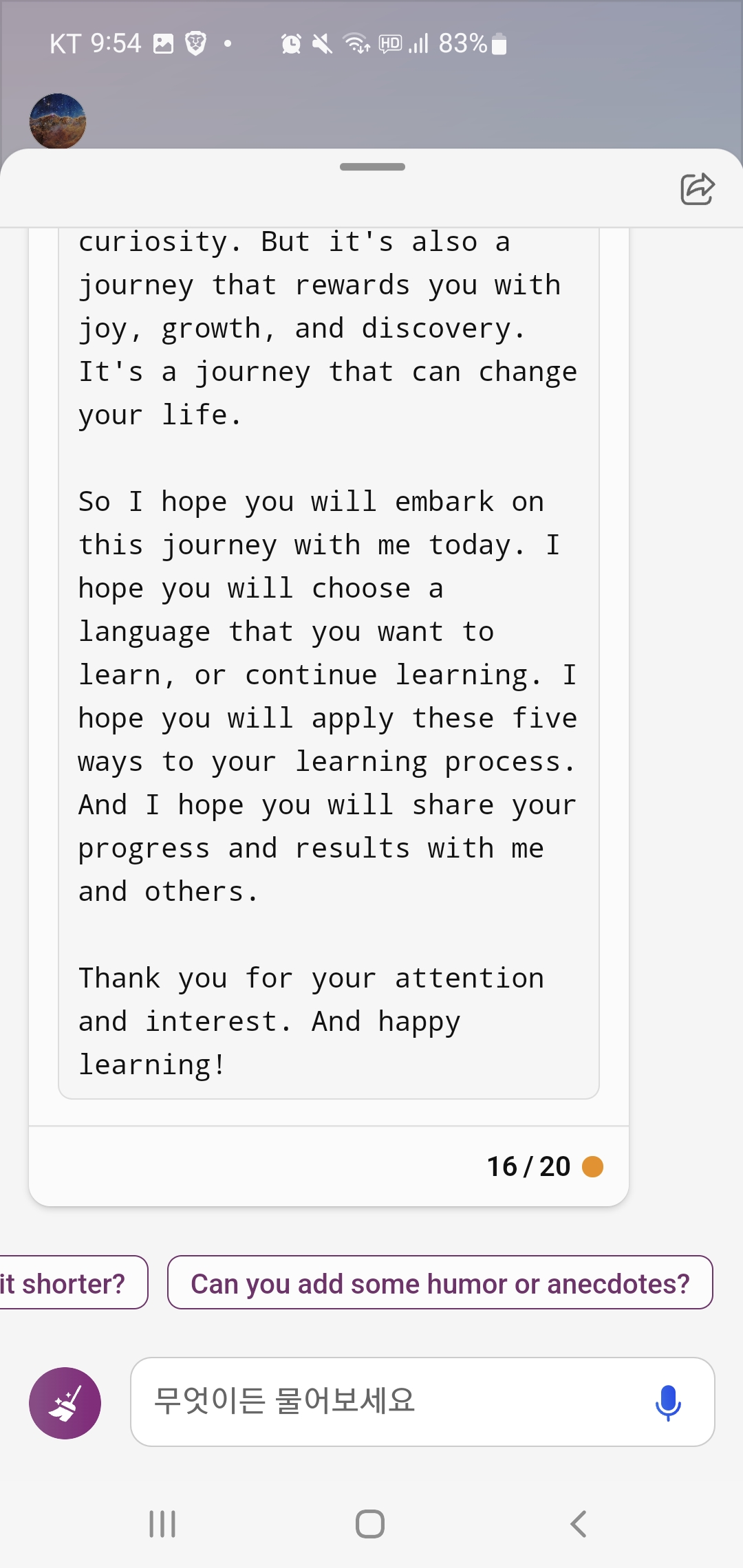 유머와 실사례를 추가할지에 대한 추천문구가 있어서 클릭!